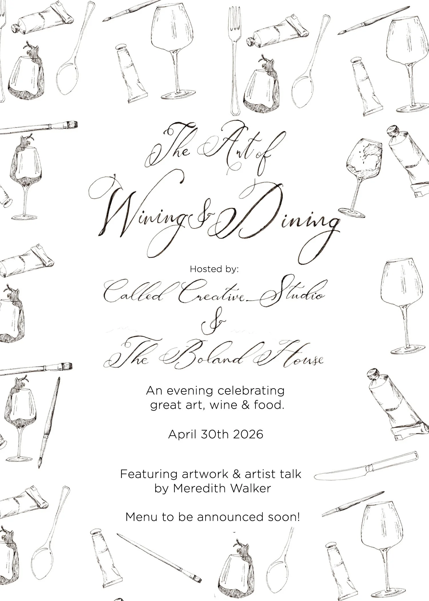 Meredith will be our featured artist for our upcoming Art of Wining & Dining event on April 30th 2026.